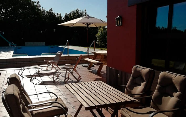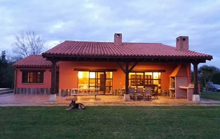 Casa de techos altos con detalles arquitectónicos en madera natural. Cuenta con espacios amplios y cómodos. La cocina está abierta al comedor y con acceso directo al salón, creando una comunicación fluida. A la izquierda se encuentra un espacio independiente, conectado con el comedor y el exterior dedicado a Bar. En la parte posterior encontramos 3 habitaciones dobles y dos baños. La cuarta habitación se sitúa sobre la cocina. Es un espacio precioso y muy amplio, con cerramiento textil para su oscurecimiento nocturno. En el exterior se puede disfrutar de su gran jardín totalmente llano, ideal para practicar algún deporte o juego de equipo. La piscina, disponible a partir del 1 de MAYO, tiene zona de poca profundidad que va en aumento. A la entrada los huéspedes disponen de amplia zona de aparcamiento para varios coches.